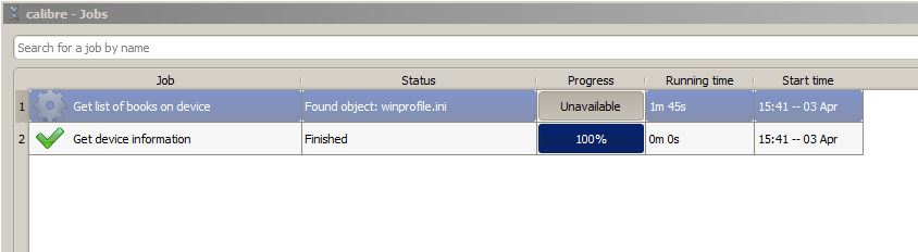 I have upgraded from a Samsung S2 which worked beautifully with Caibre to a Note 3 which won't. Calibre detects the Note 3 no problem but then hangs when it tries to get a list of books on the device. Under jobs the status column says Found object: winprofile.ini and the progress column remains hung at Unavailable. I'm using Calibre version 1.20.0, Android 4.3 and Windows 7 Professional 64 bit Any help would be great as I'm not sure where to go from here. Thanks |