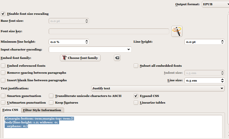 I read a book because of the letters in it, not for the space between them. The only thing to do is to put an override in it with the extra .css like : p { margin:0 !important; text-align:left !important; padding:0 !important; text-indent:0 !important; line-height:1.2em !important } But does it have to be named p or body or whatever.. I am not just so far that I know which setting will override, does it be named p,or body, or what... the !important overrides the default but how to implement it in an extra .css ??? |