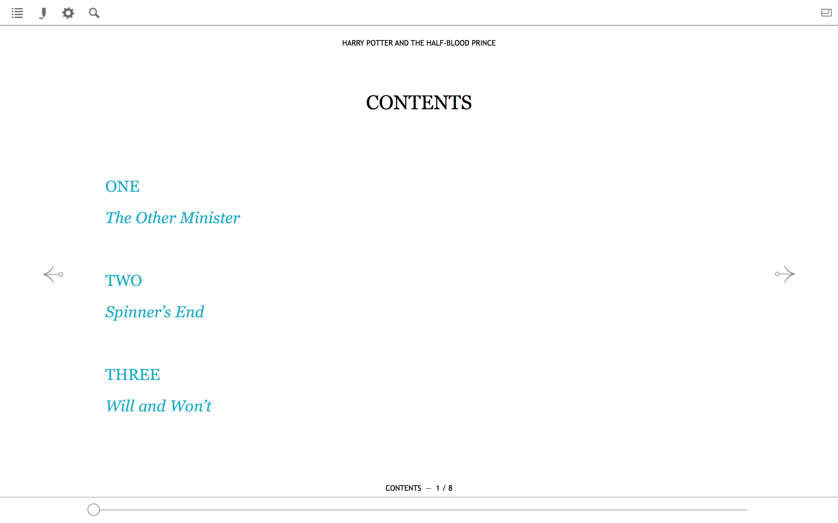 ![]() I grabbed the epub samples from Pottermore. Looking at the contents page, they are converting and displaying correctly as kepubs. These don't have not have exactly code as they only have the first chapter in them. Have you made any changes to the conversion settings? Or, do you have a "kepub-book.css" on the device that might be changing the display? And which driver are you using to send the books to the device? The standard or the extended driver? |