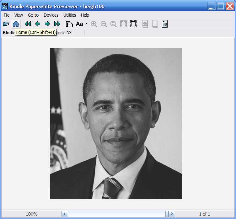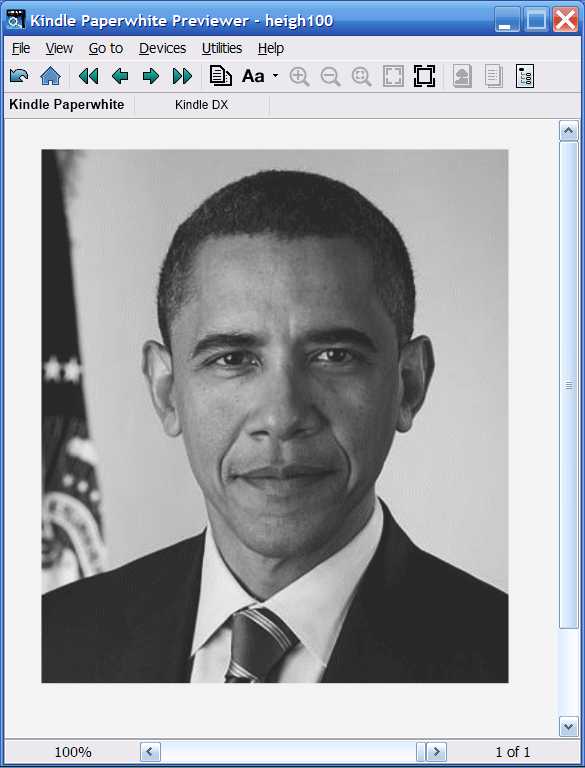 Of course, in that case, the image won't fit the screen, because it can't if it must retain proportions. But even with a svg wrapper, that kind of images (400x350) also won't fit the screen (assuming a 800x600 size). However, in both cases (with or without a svg wrapper) the image will be fully showed and without distortion (in both, portrait and landscape mode). The image will have a showed size of 685.71x300 in portrait mode and a showed size of 400x350 in landscape mode. Do the try with the Obama image I attach: It has a size of 400x350 and this is how it looks in Kindle Previewer: Below you can check the respective .mobi Regards EDIT: When we use percentage to establish the height of an element, that element take the height of its container element. But if the height of this last element is not established, then the height is ignored and replaced by the value "auto". As we don't establish a height for the block element that contains the image, then the image takes the values height="auto" and width="auto" and for that reason the ereader device doesn't ignore the css rules; instead it's obeying rules. But one different thing is when we establish the width of an object in percentage; that case if different from the "height case" and the ereader must respect the width we establish. I apologize for my english. It's not good and very probably what I wrote above has many grammar errors. Last edited by RbnJrg; 05-15-2014 at 06:24 PM. |