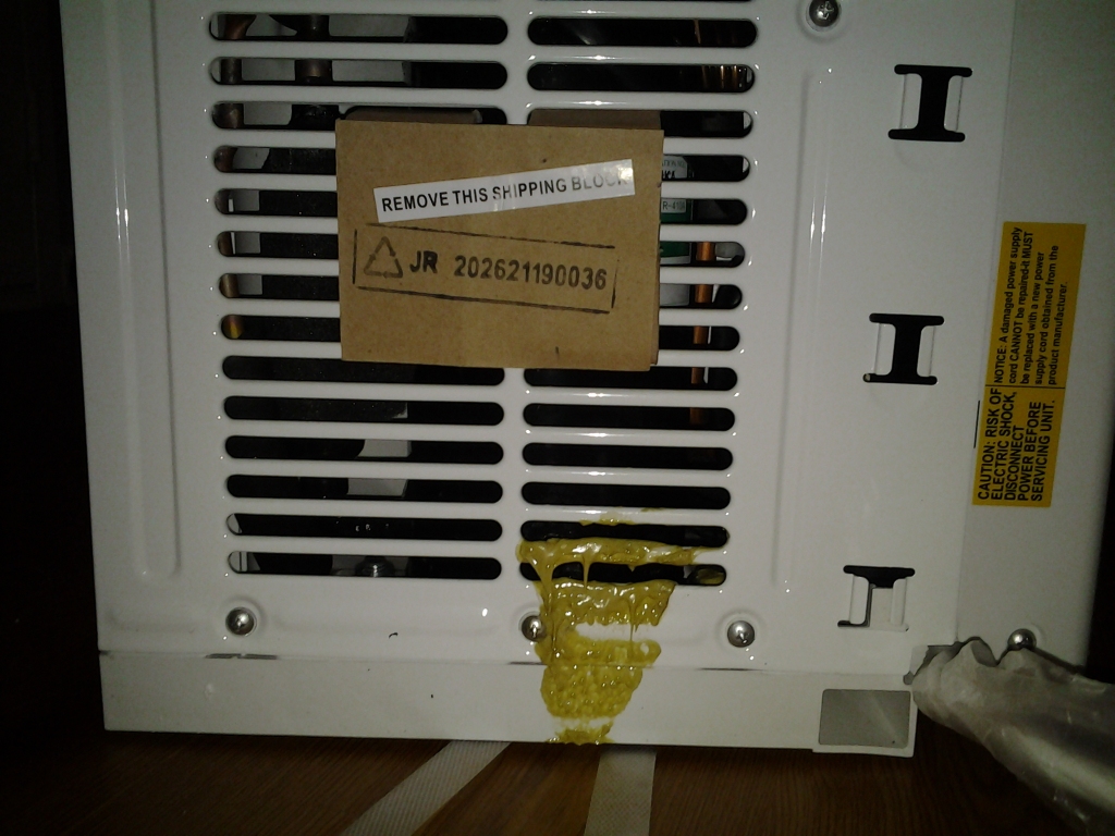 So the air conditioner arrived and the box had a huge hole in it. So we took it out of the box and I saw goop leaking out or into the vent