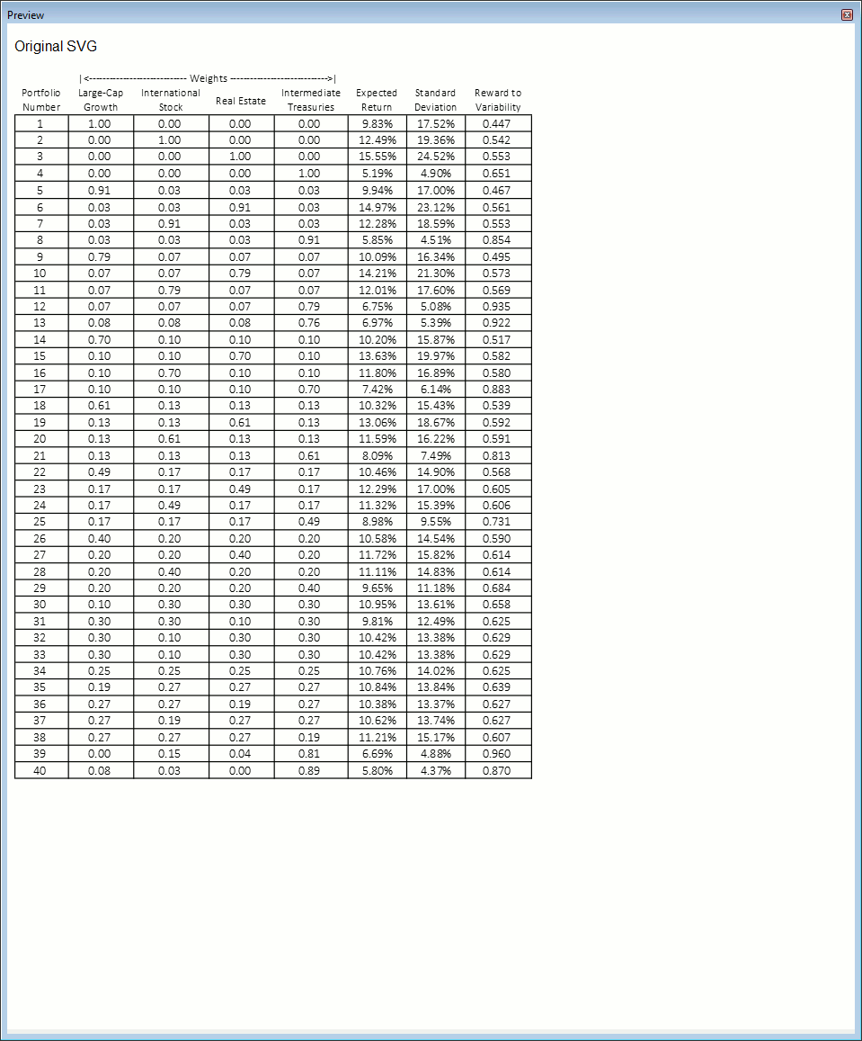 <div class="txcenter"> <p class="imcenter"> <img src="../images/13f01_eff_front_graph.svg" width="100%" height="auto" alt="Efficient Frontier Plot" title="Efficient Frontier Plot" /> </p> <p class="figurenum">Figure 13-1</p> </div> img { display: block; text-indent: 0; margin-left: auto; margin-right: auto; margin-bottom: 0; } .txcenter { text-align: center; page-break-inside: avoid; } .imcenter { text-align: center; display:inline-block; font-family: sans-serif; This has no effect. } Any place where font-family has been specified in the CSS it has been specified as normal. I did that so that readers can use their preferred fonts. .txcenter is the class for the division that contains the inline block. Adding font-family to that class has no effect either. |