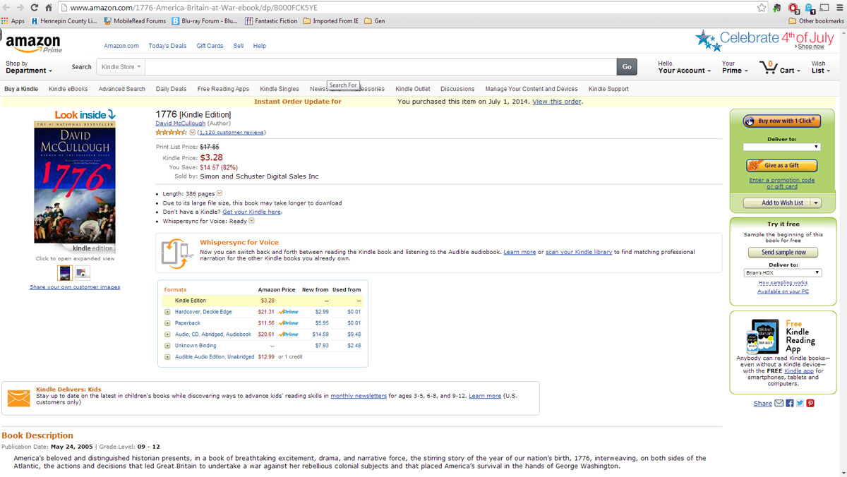 1776 by David McCullough has dropped to $3.28 at Amazon US