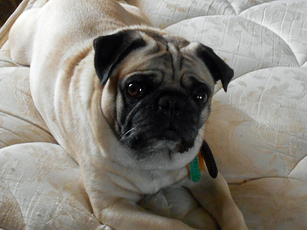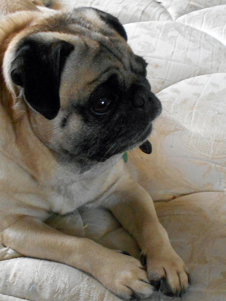 The wife and I just got back from a routine visit to the vet. Norton got a heartworm test ($48), a three-year rabies nooster ($25), and three months worth of Trifexus (combo heartworm preventative/flea and tick killer: $90). I had my wife let us off at the curb when we got into the neighborhood, and Norton and I walked the rest of the way. Here are some pictures I just took of the beast who takes all our money. If anyone's interested as to why the bed has no sheets, see this post in the Vent and Rant thread.