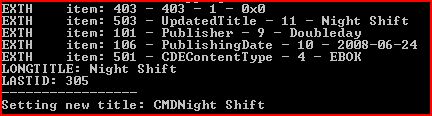 Allrighty... If its not working at a command line level then its a Mobi2Mobi issue. You'll need to post this over in the Mobiperl thread and see if tompe can sort out what is going on with the book title not updating correctly. Sorry I can't be of further help.
