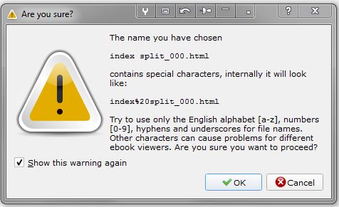 From this I deduce that its 'bad form' to have files with spaces in the name in an EPUB. But that said it would be better if Modify either bailed out, or left the file with the dubious name and issued a warning. Seems a tad harsh to just delete the file. I wonder if the Quality Check PI can help detect and prevent this situation. Can't see anything, maybe someone knows better. Could be an enhancement to QC. There are other EPUB Checkers around, maybe one of them can detect and maybe correct - anyone? BR Last edited by BetterRed; 09-10-2014 at 07:13 AM. |