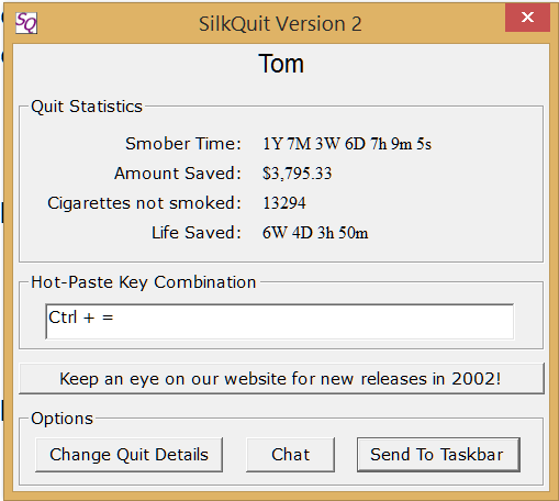 For the first five years after I stopped, checking my meter was the opening curtain of my morning. I loved seeing it climb from day to day. It was the positive feedback that kept me on track. Around year 7-8, I started to forget to check it each day, but still noticed it several times a week. These days I never see it except when the calendar tells me that it's the 21st of the month and I remember how important that date is to me. Quote: