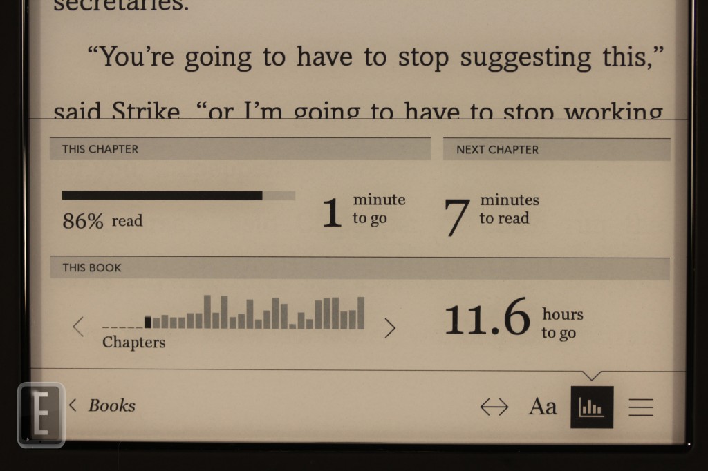 In looking at the review posted over at the http://goodereader.com/blog/electron...-kobo-aura-h20, it looks like the original in-book reading stats are back, although I'm not seeing this with FW 3.8.0 on my Aura HD. I can't remember if this is a feature only available for regular ePubs or only for books that are bought & downloaded from the Kobo store. I only sideload my books, and they are kepub-ified during the Calibre send to device process.