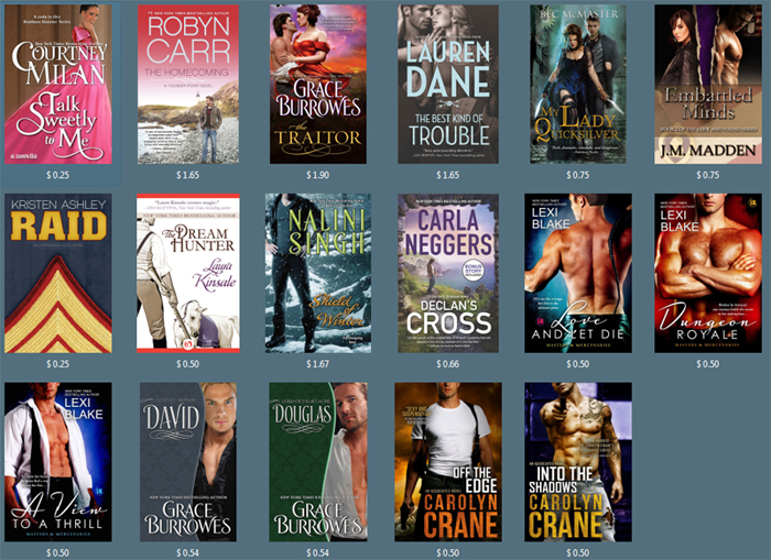 Not sure how many of you read on an IPad but Atdrake has posted an extensive list of free Penguin books from iTunes these include a number of Romance authors who's names regularly pop up in this thread. Some are even bundles for example Catherine Counters FBI bundle, Nora Roberts bundles among others
