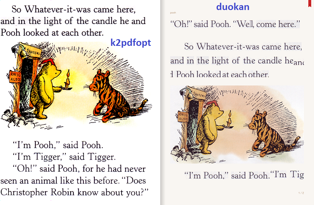 (b) It always produces images, which means that if you have a 'normal' PDF, increasing the PDF text means that you increase the image of the text, with an ugly result; Duokan recognizes 'normal' text and allows you to increase its size using normal fonts with an excellent result.
