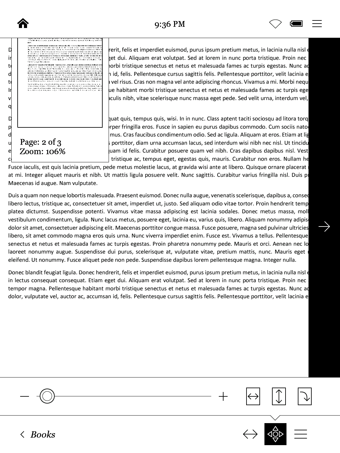 ![]() ![]() As expected I can confirm it. I really think that the problem is that pdf viewer gets locked in the very first page size... You get cropped pages in either Landscape>Portrait or Portrait>Landscape. AuraHD with 3.8.0. in my case. |