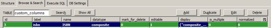 Actually, Calibre does define the name of a custom column. ISBN is a custom column, 3. The user is unable to define the field name, which is isbn, or to change its column-heading, ISBN. Its entry in the custom_column table is shown in the attached image.
