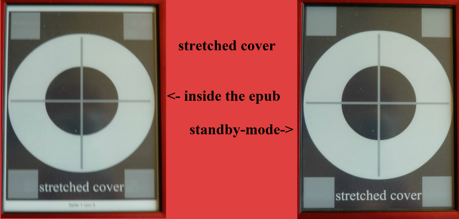 I even checked a book that was pre-installed on the reader, same result (meaning stretched cover in standby-mode again)!