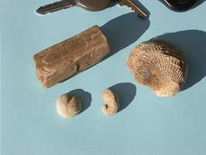 (Left to Right) One type of sea urchin, a sponge, and the lower half of a crab's claw. (Clockwise) A piece of petrified wood from the ranch. A large Oyster, a Small Oyster (original carbonate), and another type of sea urchin. A nautilus inside. The original outer shell is gone, but you can see the inner separations, and the indent in the side. Nautiluses are not common in the strata, ammonites (their cousins) are. I like you new avatar, :leer: |