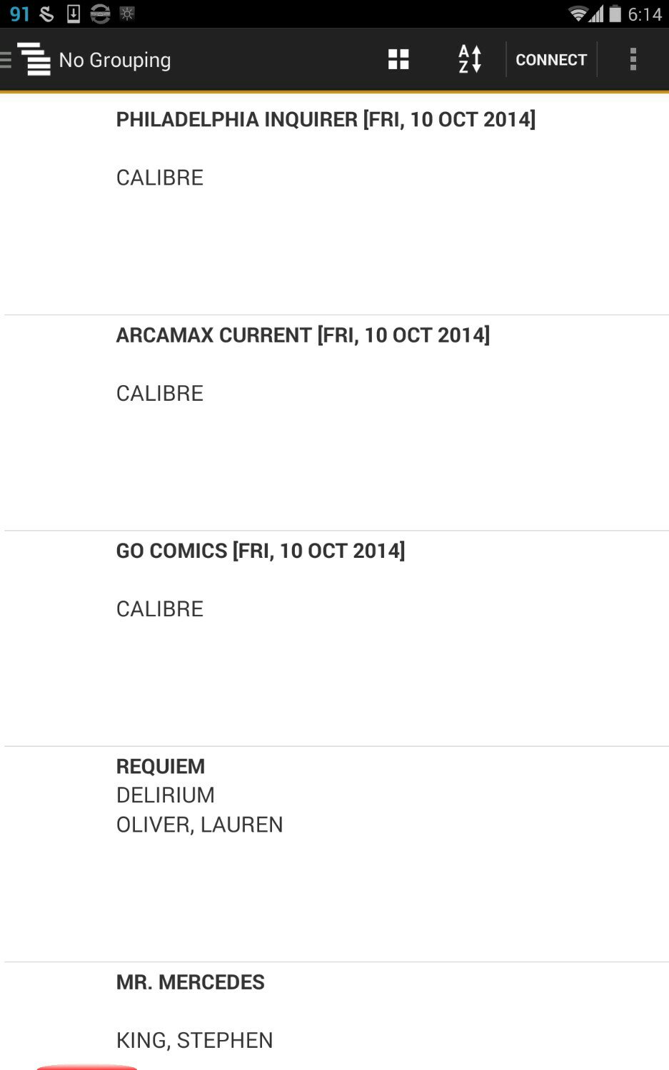 I don't know if this is new, but I just tried to connect to the content server and it failed - no books showed up and I hit disconnect. The content server problem was me and is now ok. The problem is that when I tapped disconnect and the screen went back to the book list, all covers are gone and title and author are all caps. I went to book details and back hoping that would refresh the display, but it didn't. I exited and when I went back in immediately the covers and regular text were still missing. I exited again and when I went back in after a minute everything finally looked ok again. Here's a screenprint: