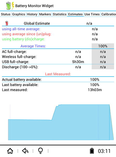 9/12 charged my device 100% in the morning + 30min of reading 9/13 100%. No changes !!! Sleeping mode 9/14 (97% to 87% sleeping mode) problem #3 started. Rebooted my device. 9/15 (87% to 70%) problem #2. I downloaded and tested few apps. 9/16 (70% to 65% sleeping mode). 9/17 (65% to 50% sleeping mode). Problem #3 again. Rebooted my device 9/18 (50% to 39% sleeping mode). Rebooted my device. 9/19 (39% to 30% sleeping mode). Average discharge rate: 1% each 3-4h (sleep mode) Problem 1&3 (1% in 2min) I think my device's battery will reach 0% after 2.5 days (the total: 10 days in sleep mode) Although, I found a way to reduce battery drain (problem #3) by using auto reboot app (each 24h), I could not find a way to solve other battery drain problems. From my point of view, the cause of these problems is the software (android build & kernel build) because many people reported a bigger problem in battery life before the latest update. BOYUE & Icarus's OS developers have to fix these problems .