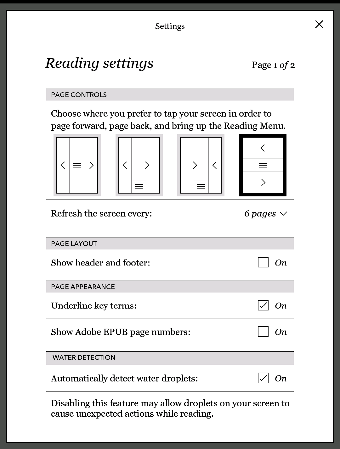 I like the new page control option. I can now tap to turn pages if I'm holding with either my left or right hand.