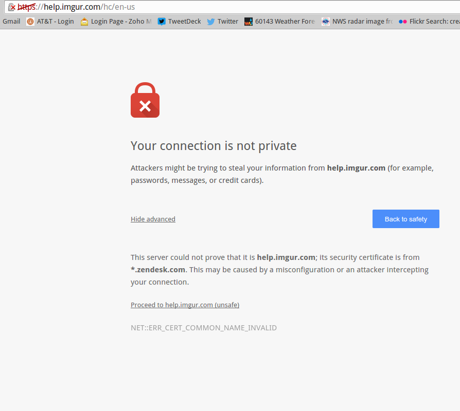 Firefox is not as twitchy. Also, I could swear that warning is only supposed to show up for sites using HSTS (Strict Transport Security)... mumblemumblemumble See: https://www.ssllabs.com/ssltest/anal...help.imgur.com for an analysis of the website security. Note the large errors about badly-configured certs. |