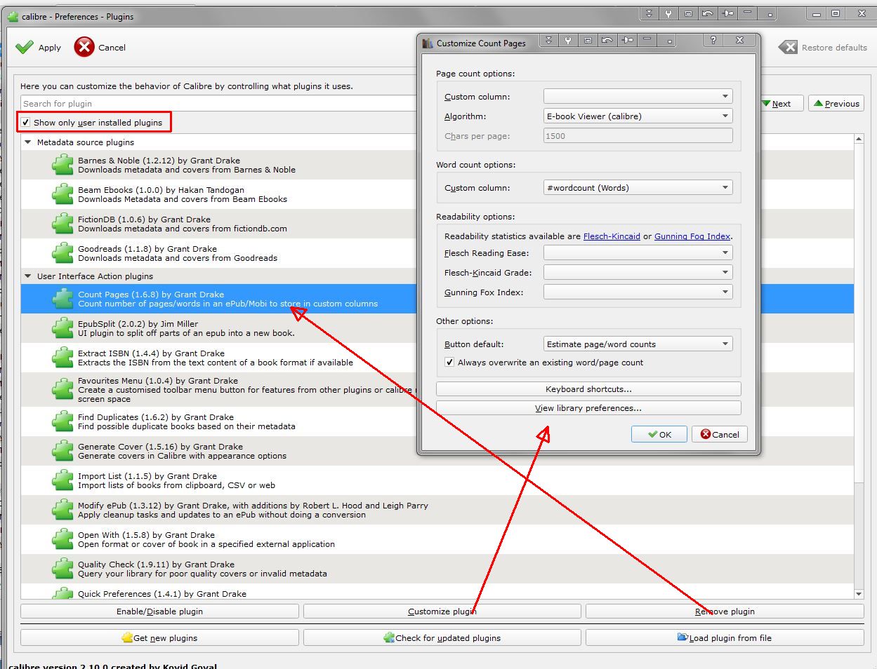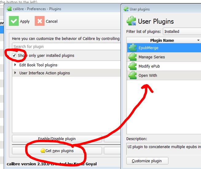 However I do agree that the Preferences approach is the better management approach. IMHO the two different paths are inconsistent and a possible source of user confusion Possibly 1. Not having the [Get Plugins to Enhance Calibre] on the Preferences dropdown on the main toolbar 2. On the Preferences - Plugins, initialize with the [Show only user installed plugins] checked 3. Also on the Preferences - Plugins [Get new plugins] only show the new (i.e. not installed) PI's that could be installed. Right now it says 'Get new' and on the surface it seems like it could be misinterpreted since the 4 in my screenshot are not 'new' 4. Remove the 'management' code from the revamped [User Plugins] dialog so that after the user selects [Get new plugins] from Preferences, the screen is limited to a list of uninstalled PI's that are available. Maybe re-label the button as [Get Additional Plugins] Like I said, it's not a major issue. but I was confused so possibly others are also |