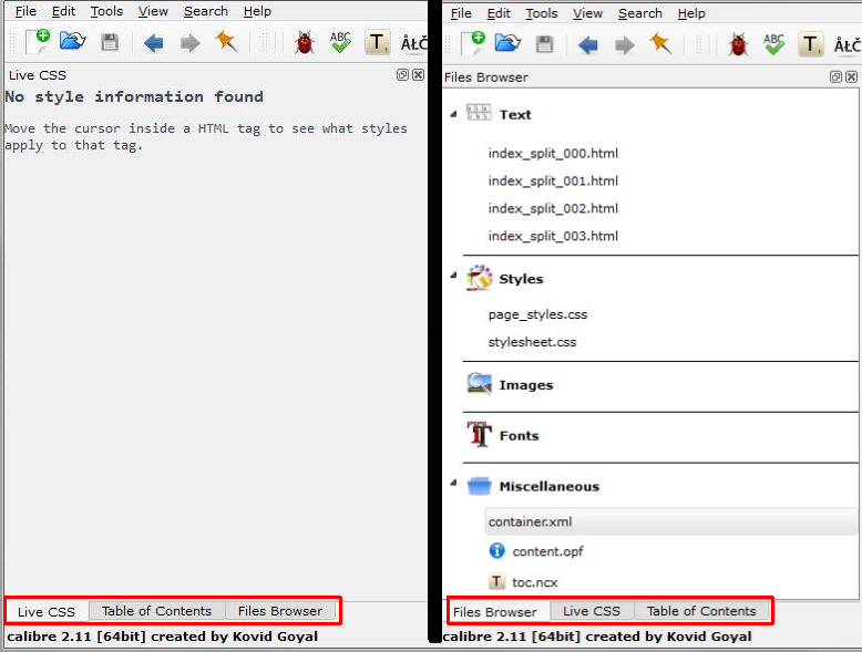 The "tab" that gets opened as a result of "edit book" is does not have anything on it saying files browser.