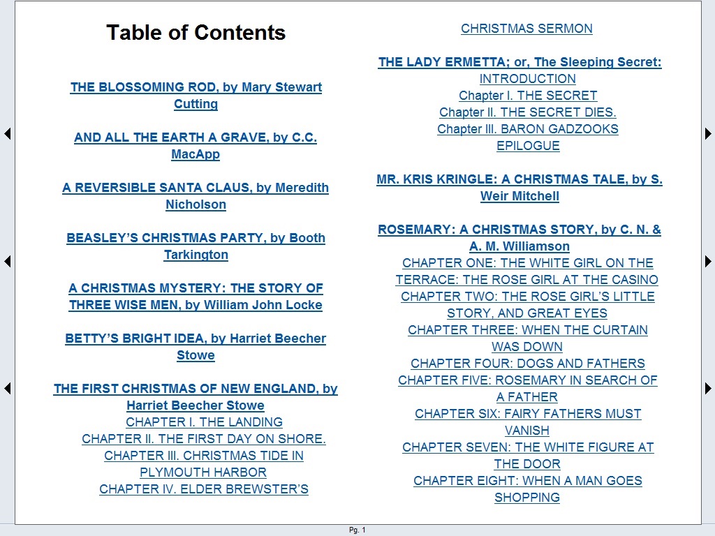 Christmas—the very word conjures up memories of the most wondrous childhood holiday of all--filled with the glitter of colorfully-wrapped presents, family visits, carols, photographs, decorating the tree, attendance at church to celebrate the birth of the Christ child, and tummy-stuffing dinners tucked with treats seen at no other time of the year. But the yule holiday has been celebrated for at least two centuries in North America, and our writers have been producing memorable stories about this unique day for almost as long. Here are 29 Christmas stories old and new, tales to delight, to entrance, to beguile, and even to sadden a whole new generation of readers. From C. C. MacApp's view of a Christmas future to Jacob A. Riis's gut-wrenching portraits of the holiday in the 1890s slums of New York to William J. Locke's reenactment of the tale of the Three Wise Men, we experience every possible facet of this most precious day of the year. So sit back and relive your memories once again, as recreated through the eyes of some of the finest writers of their time! Free today only at: http://www.wildsidepress.com/freebie.htm |