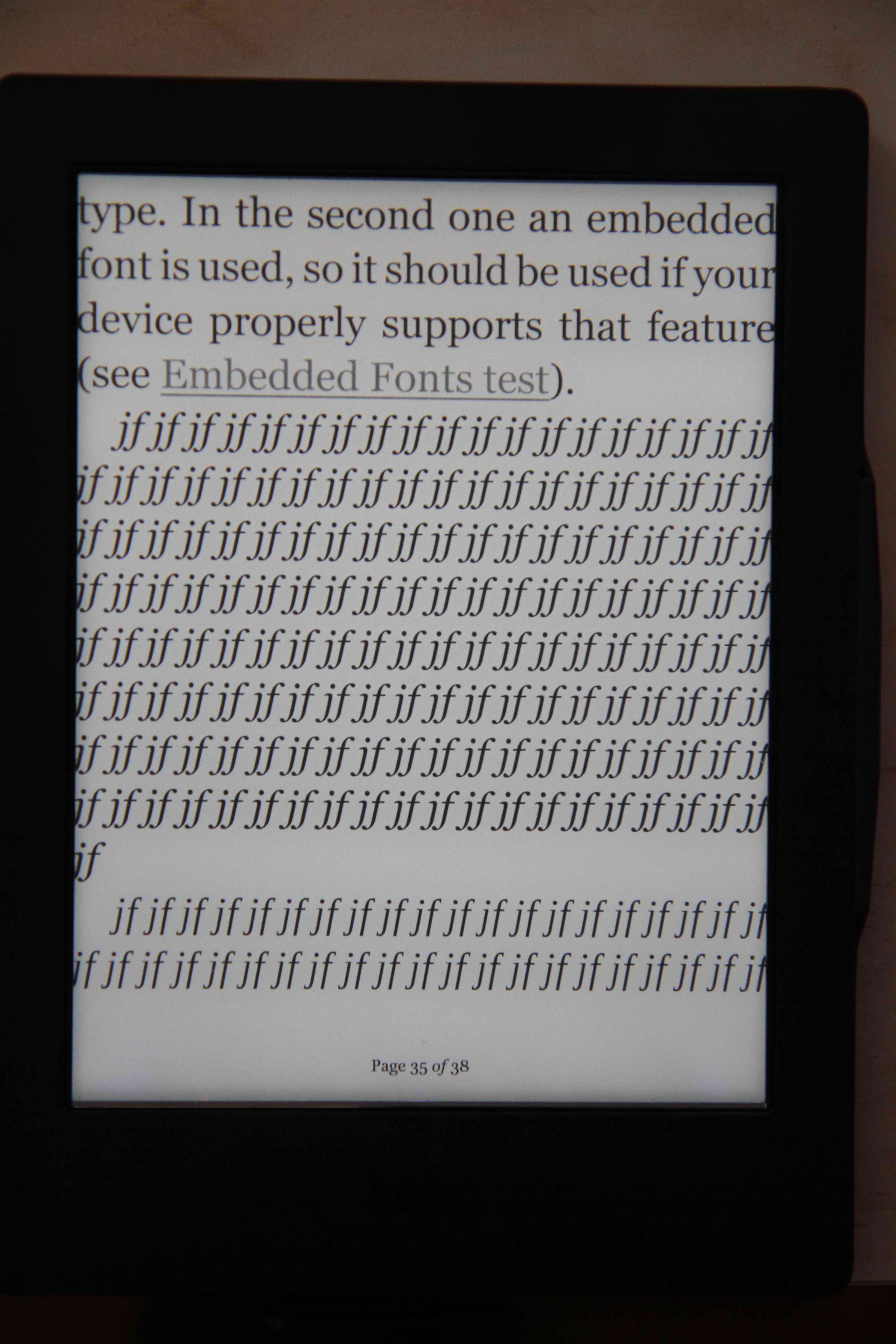 . It always happens in kepubs.Edited: I was fully wrong. You can explicitly test with my final version of Jellby's test book which you can grab in this thread. Just kepubize it however you prefer and enjoy. One of the final tested is just a repeated italic "jf" text. Last edited by arspr; 12-17-2014 at 06:47 PM. |