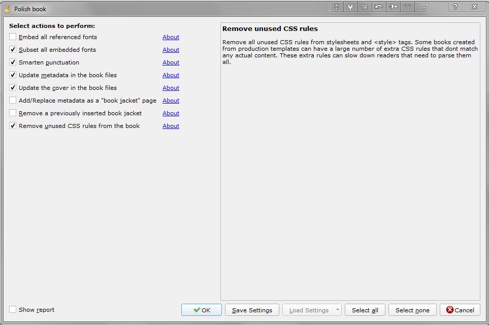 One thing I notice about your setup, it doesn't seem to be redundant, specifically regarding metadata updates. Modify is stripping out non-dc metadata, and then Polish does the job of embedding new calibre metadata... so you still get the non-dc metadata that calibre generates??? I assume Modify would not do that on its own. Plus Modify cannot strip junk CSS. |