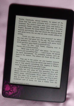 That one would not make me a happy reader. I usually get black, or a black with a slight pattern. In matte. I even have a matte black skin around my Nexus 7 tablet screen, to cut the glare. I've put matte black around my Kobo Aura and my black Kobo Glo, as well. I should get a matte white for my white Kobos. But I don't even know if they make that.