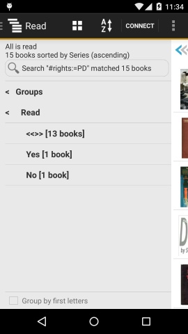 I have a column configured to show the read/unread information, and in the book details it is showing the correct state. Somehow, when I go to the grouping menu, whether I choose Read Yes or No, it only filters the books unread on both options. Am I the only one with this issue? I'm using a Samsung Note 10.1 with Android 4.1.2, and it's happening also in my phone, a Motorola with an older version of Android (4.0.something). I'm running the latest version of CC, but I have seen this for sometime, I usually choose grouping using this column to look for the books I haven't read, so it isn't really a problem, but I'm curious if it's something I haven't configured properly, because I haven't seen anybody else reporting it. |