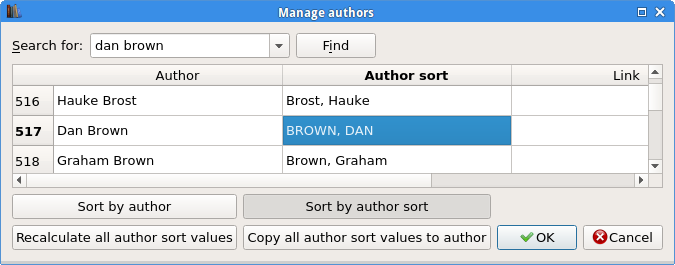 BROWN, DAN EMD in bulk, crossed "Automatically set author sort" EMD → Author sort entry→BROWN, DAN You are right. ![]() Quote: