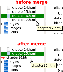 Well I found the problem. By doing the merges so fast, you can end up with stale data in the BookBrowser (the widget you posted a graphic of) and stale data in the FolderKeeper m_Resources hash (the universal list of all resources available). Randomly a Qt garbage collection thread deletes the resource but the signal that tells the FolderKeeper to update itself (remove the resource from its m_Resources hash) has not reached it yet. The second merge then hits this stale info (or some other action that wants the list of all available html resources). The following patch fixes this on my Sigil master and should work exactly the same (but with a large offset in line) in Sigil 0.8.5 source as well when applied at the end of the MergeResources routine in Book.cpp. The recent fix for closing Tabs when deletes are done may have exacerbated this by disconnecting the signal from the underlying resource when closing the tab but given the resource was deleted it should not have mattered. For BookManipulation/Book.cpp Code: