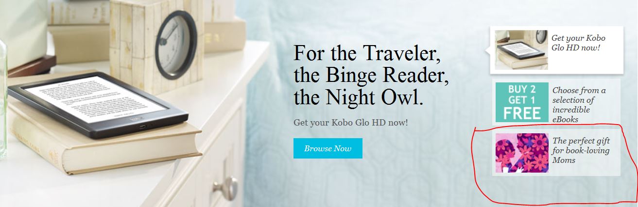 Overnight I received a Kobo latest releases email to my Aus account. All well and good, except the interesting part was at the very bottom of the email, in French, I was invited to buy my Mother a Glo HD for Mother's Day.