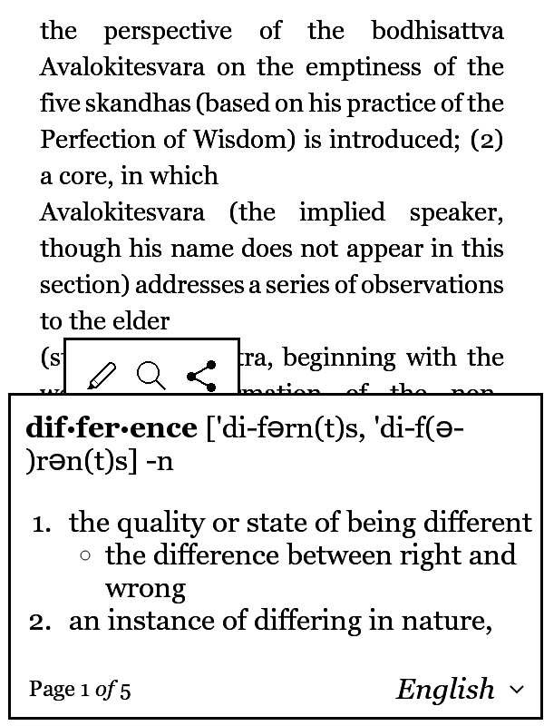 This time I changed some values for the inline dictionary panel too. Most critical are words that are located roughly halfway between top and bottom. If words in such a position are selected the selection circles, or the annotation/search/share panel tend to be hidden by the enlarged dictionary panel. If the circles are hidden, you can make them accessible by touching the annotation/search/share panel (cf. screen_002.png, screen_003.png). If the annotation/search/share panel is hidden you can make it accessible by touching the left circle (cf. screen_004.png, screen_005.png). If you need to change the height of the inline dictionary panel and its text field, look for #InlineDictionaryView in nickel.txt, and for #textEdit in libnickel.so.1.0.0.txt. I attach also the patch files in Metazoa style (mbe_3.15.0_mz-style.zip). Be aware that not all patches of the regular package are covered by them. Last edited by tshering; 05-13-2015 at 10:00 AM. |