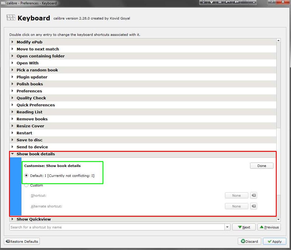 - what do you see if you right click the 'centre' cover, I see a menu What happens if you select 'Show book details' You might also want to check Preferences->Keyboard->Show book details BR |