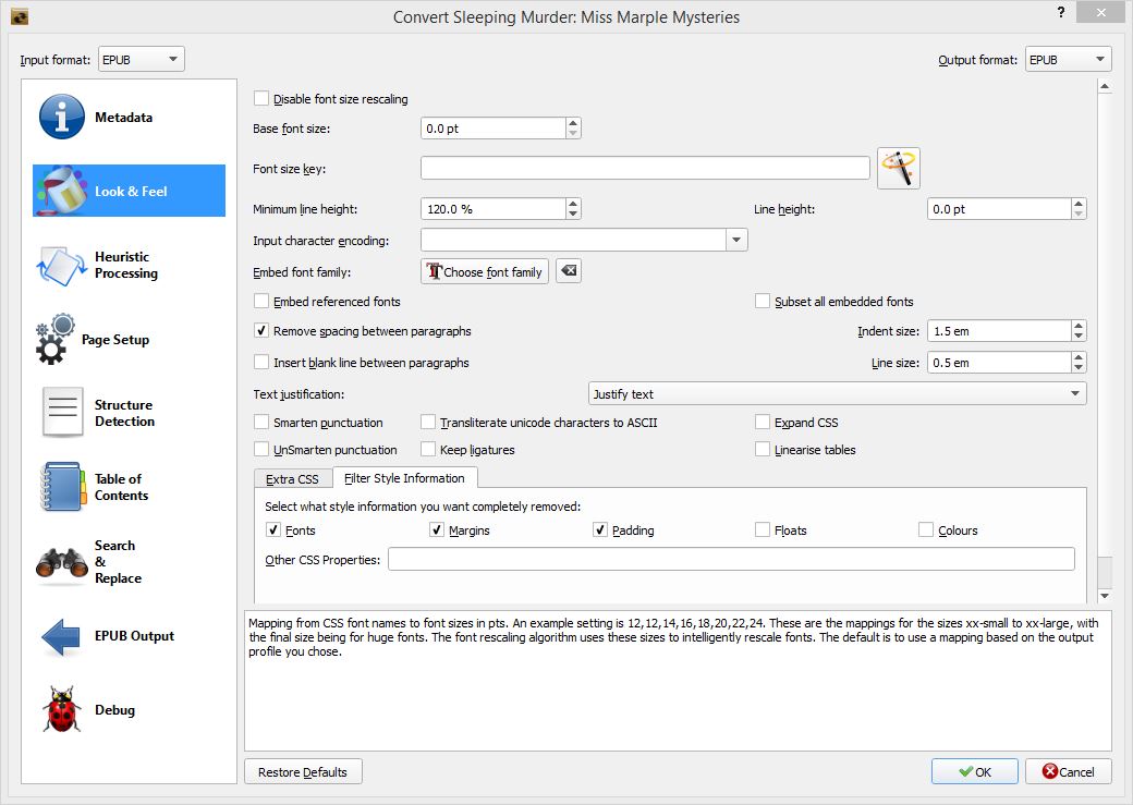 WOW.....Thanks so much Chi Cygni. Your explanation and thumbnails will help me and my H2o a lot. I will try to fix some later this evening. Unfortunately my knowledge of Calibre consists of converting files to epub when necessary. Never thought to use the settings. Now I have something new in my toolbox!!