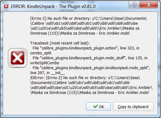 To be fair, though ... calibre was entirely blameless (as was the underlying KindleUnpack engine). The problem was the jump from v0.77.x of the plugin to 0.80.x. Version 0.80.x introduced an entirely new codebase (both engine and plugin). I did something goofy when trying to hook into the underlying Splitting function that was blowing up whenever a calibre library and/or file path containing non-asciii characters was passed to the wrapper method. |