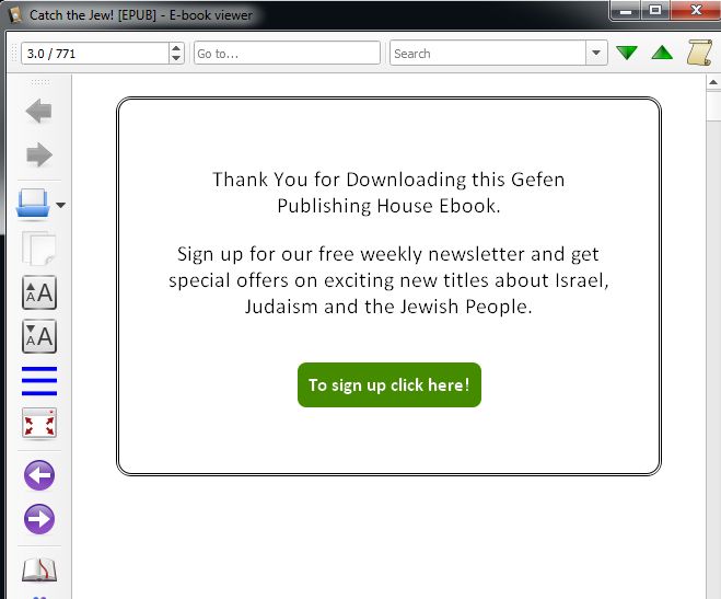 I used the following code to add a link to a book page. I added the page and the css page to to the epub file in calibre and it works fine. But when I use calibre to convert ebup file to mobi, the button and other design elements to not render. I am using calbre to view the books in each case. See attachments. Can anyone help me with this? <body class="calibre2"> <div class="box"> <p class="calibre3">Thank You for Downloading this Gefen Publishing House Ebook.</p> <p class="calibre3">Sign up for our free weekly newsletter and get special offers on exciting new titles about Israel, Judaism and the Jewish People.</p> <p class="button"><a class="a" href="">To sign up click here!</a> </p> </div> |