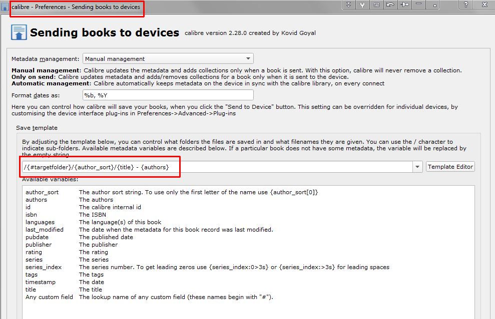 I take the start : - I converted my books with Calibre. I use the Save option to save Calibre my books on my hard drive. - The backup directory is always the same and recognized by Calibre. - In this directory, ebooks are consistently named as I want: in a folder by author and named "author - title.epub" - That's when I copy them to my reading light. I then do a sync library reading light so that new books are recognized. - And it is only then that some books are seen by the library as "author - title" and not just "title" in the author's folder. Last edited by korben; 06-21-2015 at 07:45 AM. |