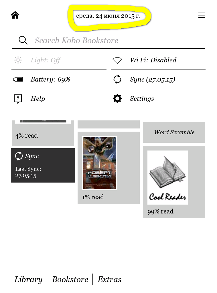 But if I change the option CurrentLocale = it_IT on CurrentLocale = ru_RU in file Kobo eReader.conf. Also copy "trans_it.qm" to "trans_ru.qm". Then date will appear in russian, but interface still remains in english.