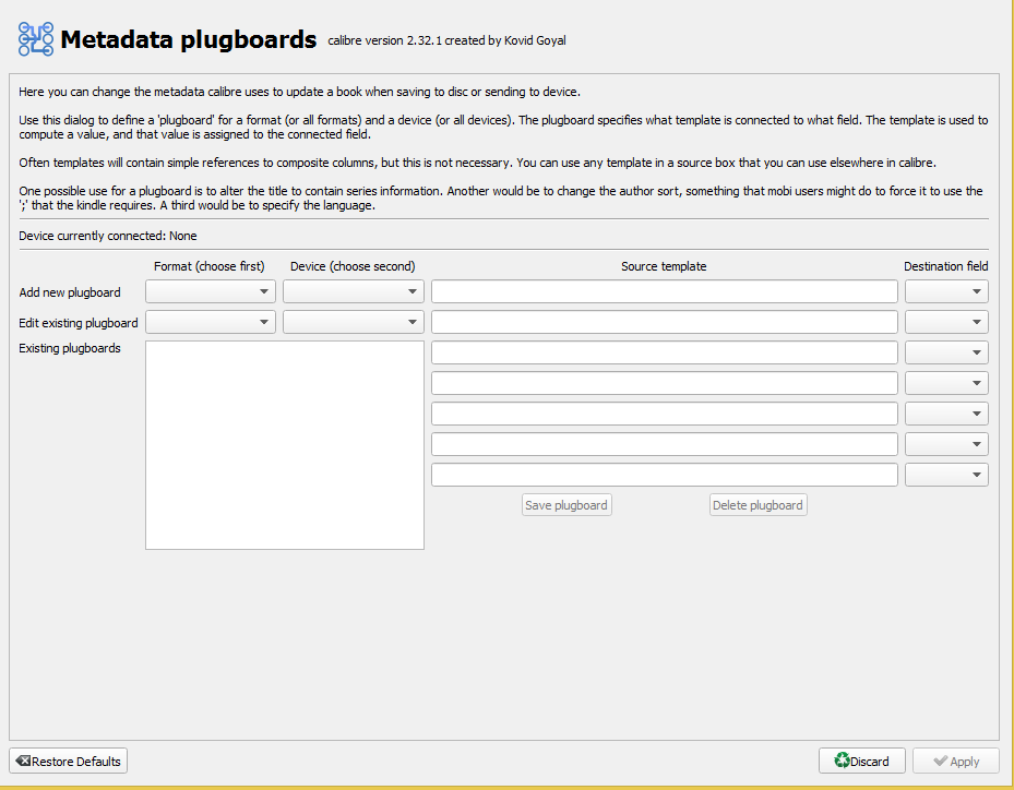 One thought is the save template in the driver configuration. When I first read this, I read it as only the last book sent is on the device. That is a sign that the save template is generating the same file name for all books when they are sent. When you send the second book, it would replaces the first book. And when you disconnect the reader, it will only have one book to process. But, you said that none were appearing on the device. That might mean the send is replacing a book sent in the last connection session and hence the device is not seeing any new books at all. Checking the save template would be a good idea. Last edited by davidfor; 07-22-2015 at 01:33 AM. Reason: Fixed quoting |