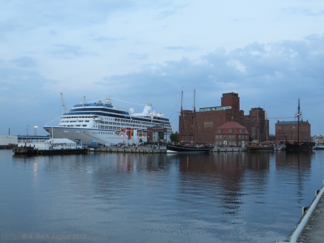 So ein großes Schiff passt da rein. Das hätte ich nicht gedacht. Ein wirklich hübscher Hafen, immer noch in guter Erinnerung von unserer verregneten Ostseeradtour vor ein paar Jahren. (In Wismar hats da auch grade nicht geregnet...)
