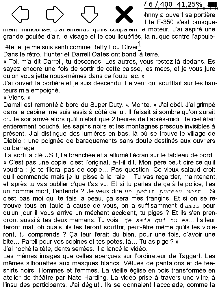 It's about a small malfunction in the full screen update procedure in Pocketbook. So it's not a Coolreader bug; it's also reproducable at the build-in Adobe and FBreader. And it's a minor issue but nevertheless excists. Personally, I prefer quality vs speed. And speed is a relative term; an user invention is still necessary to 'turn' a page. You can exhibit the phenomenon yourself: Make sure you have backlight on at max setting and set 'Display update mode' to 'Don't use fast updates'. Choose a dark, bold font and set it's size at max (nowadays you can get to 150 and perhaps even embold the font even more (Font settings -> Font embolding). Now start turn pages and look accurate and you can exhibit some light ghosting from the previous page in the dark portion of the text.When you carry out the same experiment and set 'Display update mode' to 'Always use fast updates' and manually refresh after a turned page (program either 'Full screen update' or 'Invert display' as a Tap action) and you will witness a more even, darker black text. Although not a lot people will read with this font settings, this phenomenon will still be present at smaller sizes and to put it plain simple: the contrast on a Pocketbook could be a notch better. As earlier said, it's due to how Pocketbook executes a full screen refresh at page turn: - step 1: the new page is displayed inverted - step 2: just before step 3, the old page is briefly displayed inverted - step 3: the new page is displayed normal Look at the pictures in the attachment (build-in Adobe reader) to see wath I'm try to explain... |