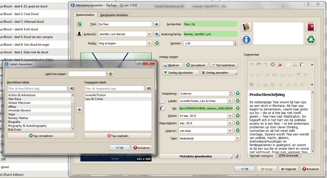 If you open labels, the translation talks suddenly again about a tag. But he calls the tag browser a filter browser to look for filters. And in the search for tags he is using tags, and filters together.. So in first I was thinking, nice.. ad a tag.. where, how,what... The help isn't useful,because there the same happens,the same difference in words.. So I first have to figure out, ok a tag.. how would the calibre translator call this.. then find the option.. but using words that are used in english to, the translator calls a tag a label, but that again is also an english word,then used filter which is also again an english word .. that is why I always try to find screenshots so I just know what nice people like you are talking about and how that function is called in my language, because really translated, a tag is not the same as a label... And in the same small screen at the bottom, he uses 2 different translations for the same thing: remove tag.. ( on the left with the green: Tag verwijderen, and on the right with the red coss: Tag weghalen) like deleting and removing.. |