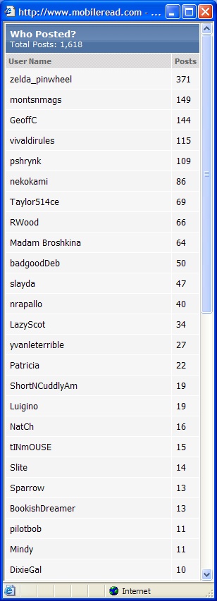 In the other attachment below you will see the Top 25 Posters to this thread. Interesting....