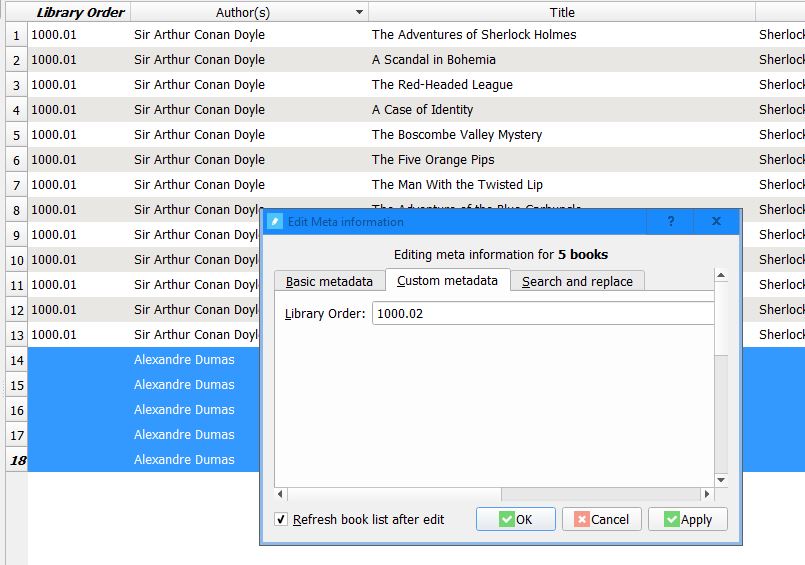 1) Is there a way to have in the "main page" (i think is "Authors" ) a custom order of the books that doesn't depend from author name,title ecc.? I just want to switch position of the books like in a proper library.
