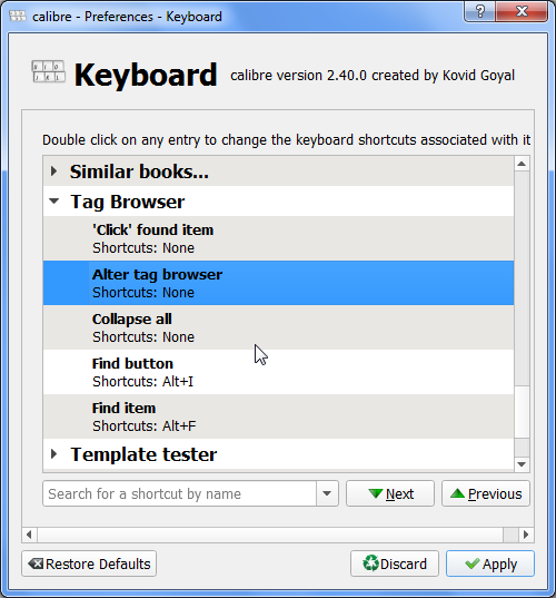 @BetterRed and @mariaclaudia: Kovid accepted my changes to add configurable keyboard shortcuts for some tag browser functions. The attachment shows what they are. Two of them have assigned shortcuts for compatibility.