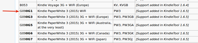 G090G6 was missing. I just added G090G6 as Kindle PaperWhite 3 (2015) 3G + WiFi (Canada) in the Wiki (I confirm mine is).