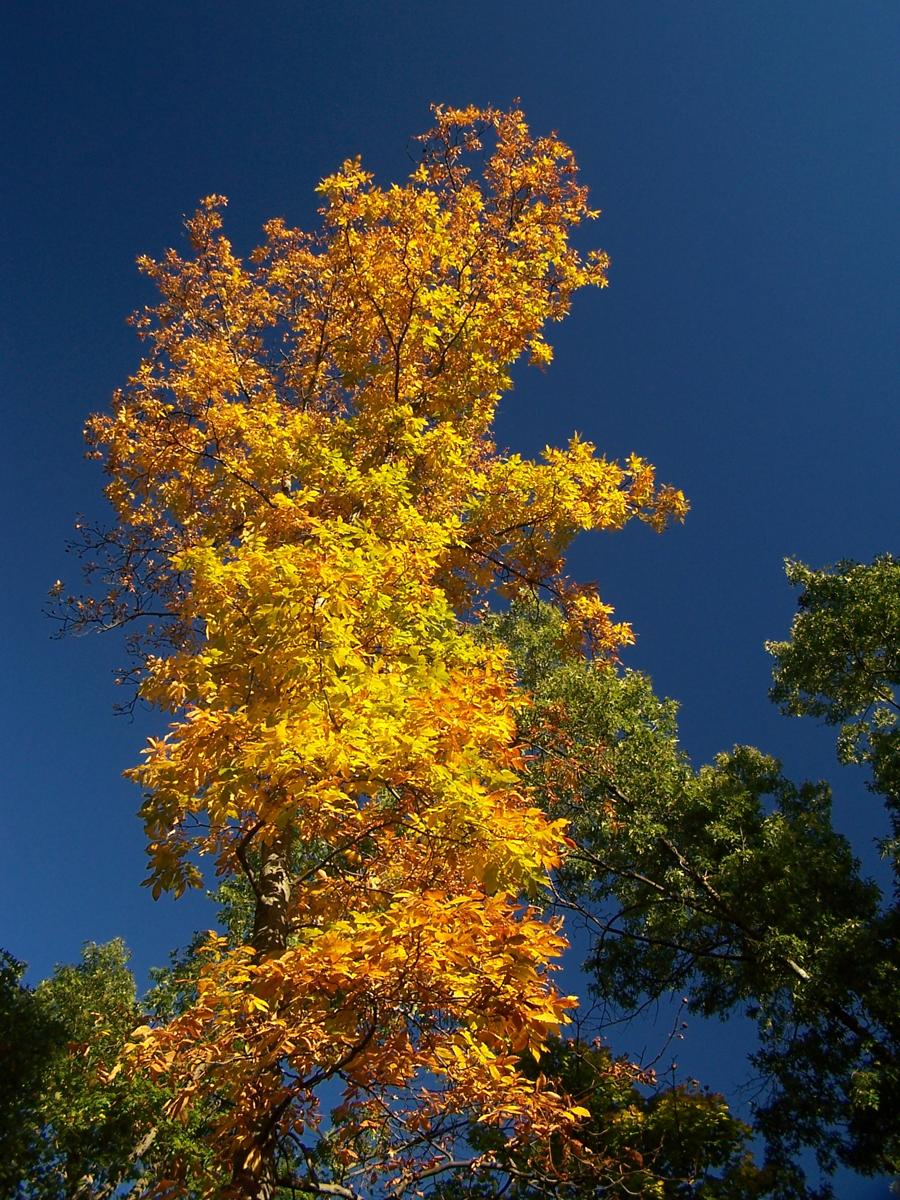 The annual change is well underway. The Ash and Hickory are usually the first to change color around here, but we lost our Ash trees a few years ago when the water table rose. (It also opened up several new springs in the back yard!)