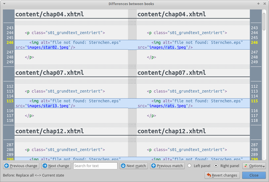 F B stylesheet.css S&R HTML-code F B Text Differences between books Check Book The file content_images_star.jpeg is not referenced [content_images_star.jpeg] Delete star.jpeg→Check Book OK. Just I see: @eschwartz has schmuggled me some 3 stars inside for change of scene (changeable in stylesheet.css) Code: