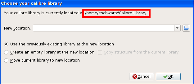 ...Or, since calibre currently knows where your library is, you can find out from the Quick Switch dialog.